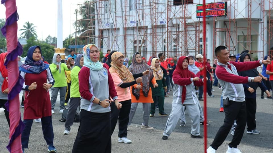 \Dalam rangka memeriahkan Hari Ulang Tahun Korps Pegawai Republik Indonesia ke 47, DPD Korpri Kabupaten Dharmasraya menggelar senam sehat dan layanan pemeriksaan kesehatan gratis, di Halaman Kantor Bupati Dharmasraya, Selasa (27/11).Kegiatan senam sehat ini turut diikuti langsung oleh Wakil Bupati D...