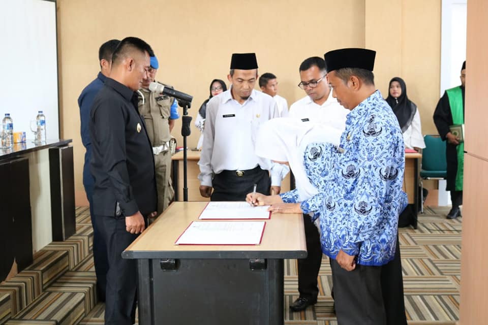 DHARMASRAYA - 10 pejabat administrator dan pengawas di lingkungan Pemerintah Kabupaten Dharmasraya dilantik dan diambil sumpahnya oleh Wakil Bupati Dharmasraya, H. Amrizal Dt Rajo Medan, Rabu (28/11).Pelantikan yang dilaksanakan di Aula Kantor Bupati Dharmasraya itu turut dihadiri oleh Sekda Kabupat...