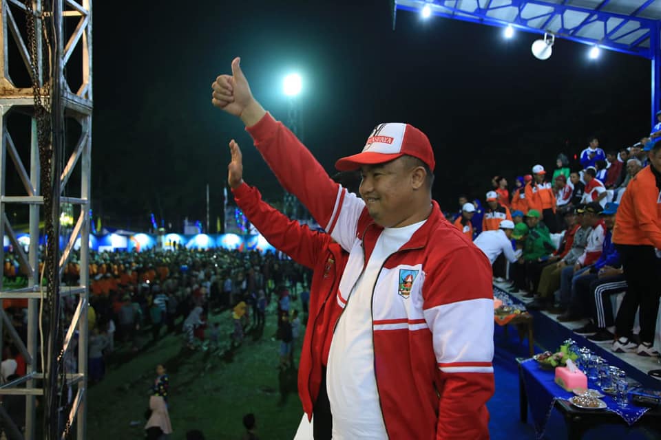 Bupati Dharmasraya, Sutan Riska Tuanku Kerajaan menghadiri acara pembukaan Pekan Olahraga Provinsi Sumatera Barat ke XV di Gelanggang Olahraga (GOR) Durian Nan Gadang Nagari Sungai Sariak, Kecamatan VII Koto Sungai Sariak, Kabupaten Padang Pariaman, Senin (19/11) malam.Pembukaan Porprov oleh Gubernu...