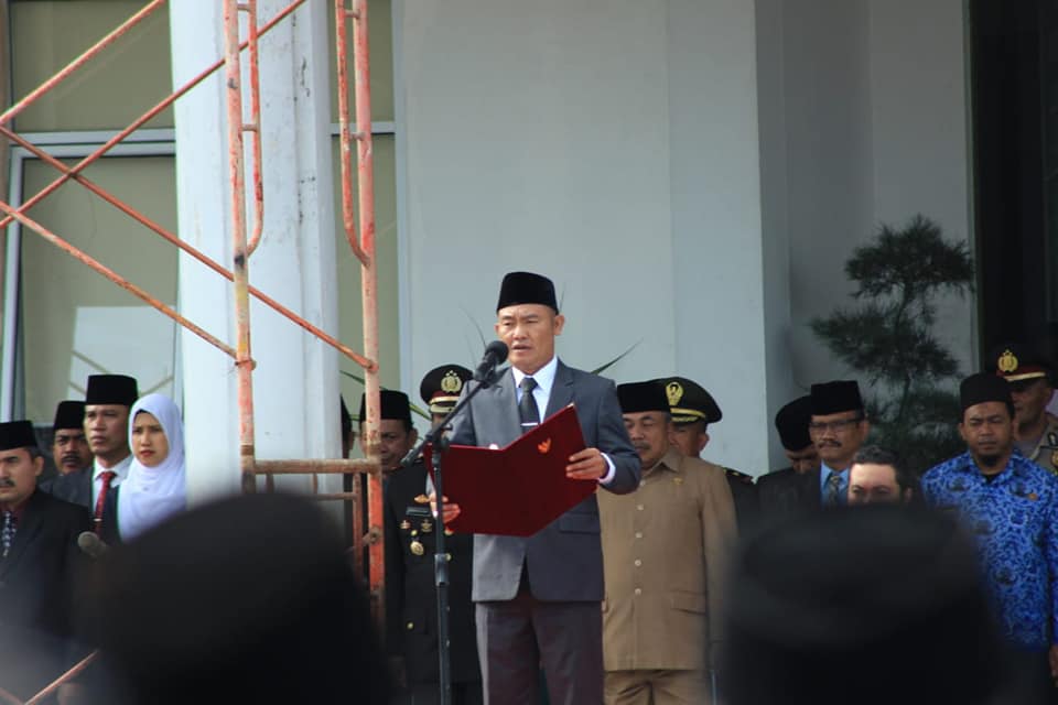 DHARMASRAYA - Wakil Bupati Dharmasraya, H. Amrizal Dt Rajo Medan, menjadi inspektur upacara dalam peringatan Hari Pahlawan yang dilaksanakan di Halaman Kantor Bupati Dharmasraya, Sabtu (10/11).Upacara yang diikuti oleh ASN di lingkungan Pemerintah Kabupaten Dharmasraya itu turut dihadiri oleh Forkop...