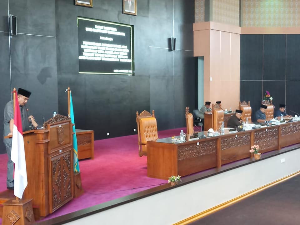 DHARMASRAYA – Bupati Dharmasraya, Sutan Riska Tuanku Kerajaan memberikan jawaban atas pandangan umum fraksi-fraksi DPRD Kabupaten Dharmasraya terkait Ranperda APBD Tahun Anggaran 2019 yang disampaikan pada Selasa (30/10) lalu. Jawaban ini disampaikan bupati dalam Rapat Paripurna yang diseleng...