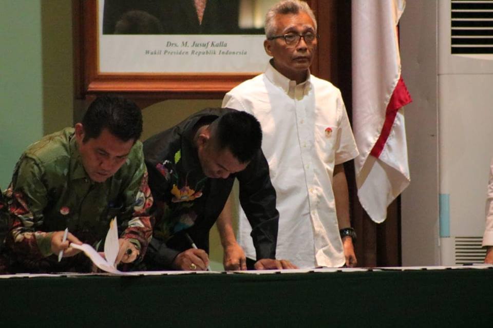 DHARMASRAYA, Humas Pemda - Wakil Bupati Dharmasraya, H. Amrizal Dt Rajo Medan menandatangani naskah dan berita acara serah terima Hibah/Alih status Barang Milik Negara dari Direktorat Jenderal Cipta Karya Kementerian Pekerjaan Umum dan Perumahan Rakyat kepada Pemerintah Kabupaten Dharmasraya. Penand...