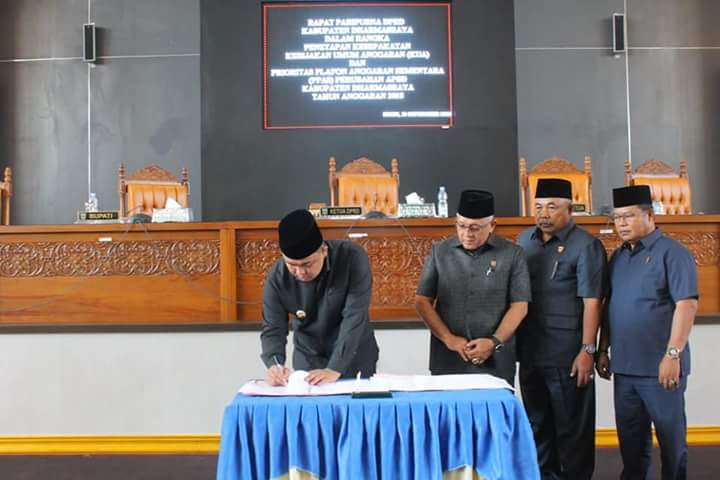 Kebijakan Umum Anggaran (KUA) dan Penetapan Plafon Anggaran Sementara (PPAS) Perubahan APBD Tahun Anggaran 2018 Kabupaten Dharmasraya resmi ditetapkan. Ini ditandai dengan dilakukannya penandatanganan nota kesepakatan antara Pemerintah Kabupaten Dharmasraya dengan DPRD, dalam Rapat Pleno Penetapan K...