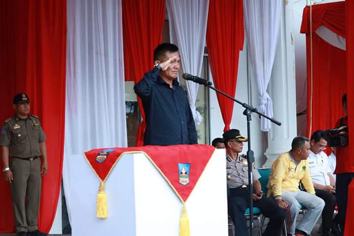 DHARMASRAYA - Upacara detik-detik proklamasi dalam rangka memperingati Hari Ulang Tahun Kemerdekaan Republik Indonesia ke 73 Tingkat Kabupaten Dharmasraya, di Halaman Kantor Bupati Dharmasraya, Jum'at (17/08), berlangsung khidmat. Bupati Dharmasraya, Sutan Riska Tuanku Kerajaan bertindak sebaga...