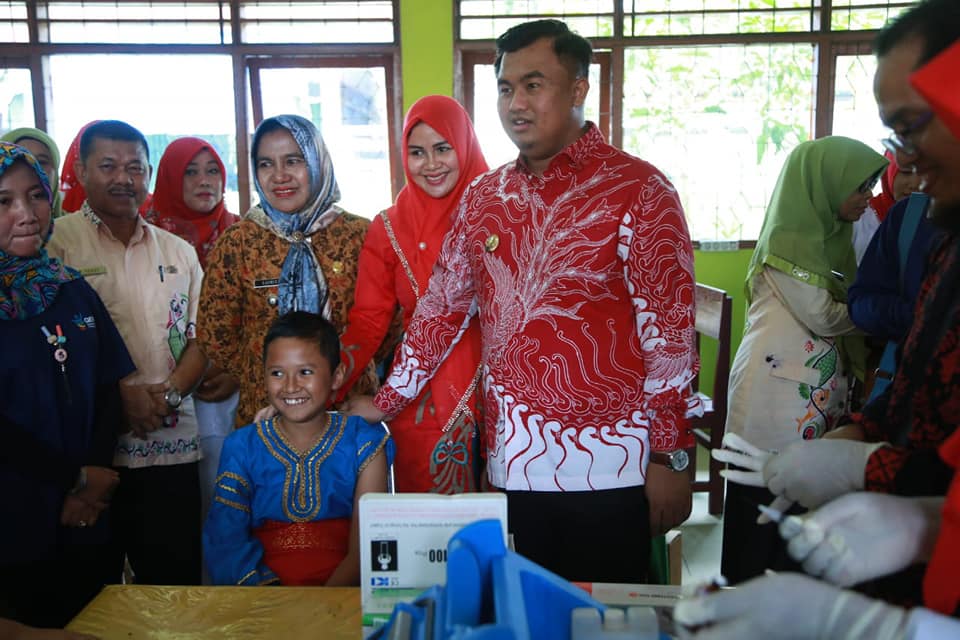 DHARMASRAYA - Kampanye dan introduksi Imunisasi Measles Rubella (MR) di Kabupaten Dharmasraya resmi dicanangkan Bupati Sutan Riska Tuanku Kerajaan, Kamis (02/08). Pencanangan yang dilakukan di SMPN 2 Pulau Punjung ini ditandai dengan penyuntikan vaksin MR kepada sejumlah anak di sekolah tersebut.Bup...