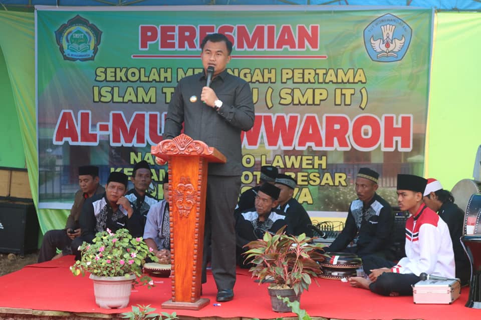 DHARMASRAYA - Bupati Dharmasraya, Sutan Riska Tuanku Kerajaan, meresmikan Sekolah Menengah Pertama Islam Terpadu (SMP-IT) Al Munawwaroh yang berada di Nagari Koto Laweh Kecamatan Koto Besar, Kamis (26/07).Pada kesempatan itu bupati menyampaikan apresiasi dan rasa bangga atas berdirinya SMP IT Al Mun...