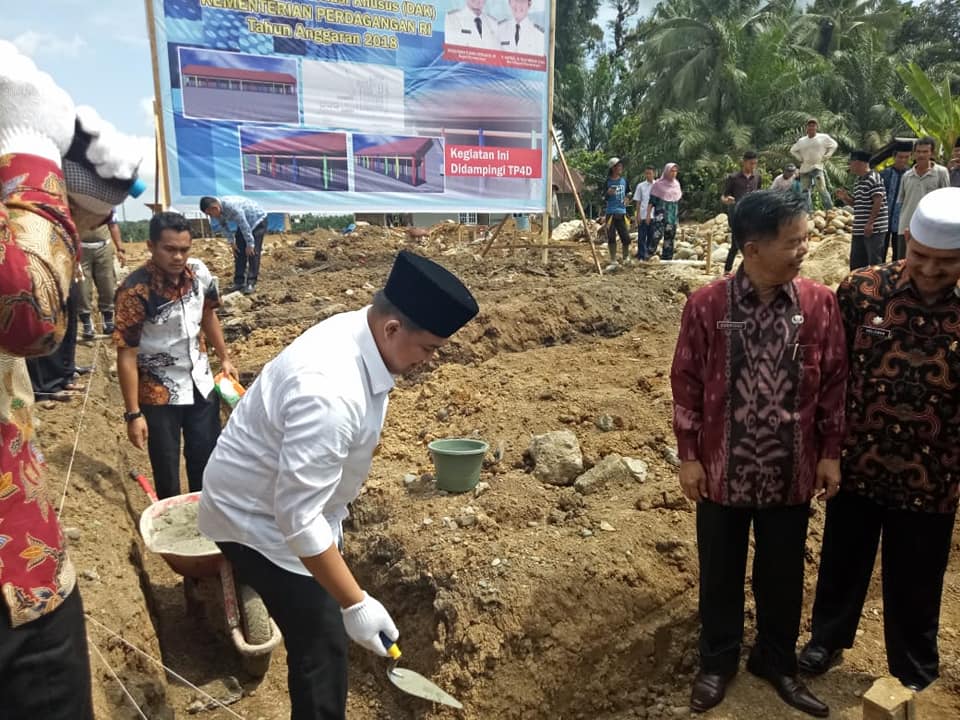 Usai halal bihalal bersama masyarakat dan Pemerintah Nagari Sitiung, Bupati Dharmasraya, Sutan Riska Tuanku Kerajaan, melakukan peletakan batu pertama pembangunan prasarana Pasar Sitiung di Kecamatan Sitiung, Kamis (28/06). Memanfaatkan Dana Alokasi Khusus (DAK) tahun 2018, Pemerintah Kabupaten Dhar...