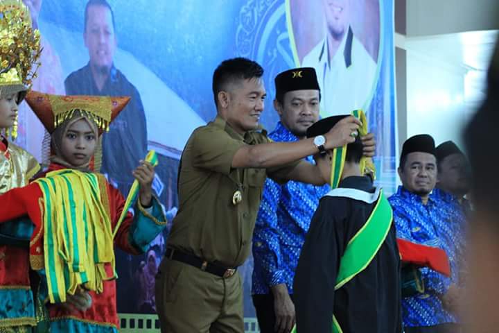 DHARMASRAYA - Wakil Bupati Dharmasraya, H. Amrizal Dt Rajo Medan, didaulat untuk mengalungkan medali kepada 72 wisudawan wisudawati SD IT dan SMP IT Al Bina dalam acara Wisuda Tahfizh Akbar Yayasan Bina Ul Ummah Kabupaten Dharmasraya, di Auditorium Kabupaten Dharmasraya, Selasa (26/06). Wabup d...