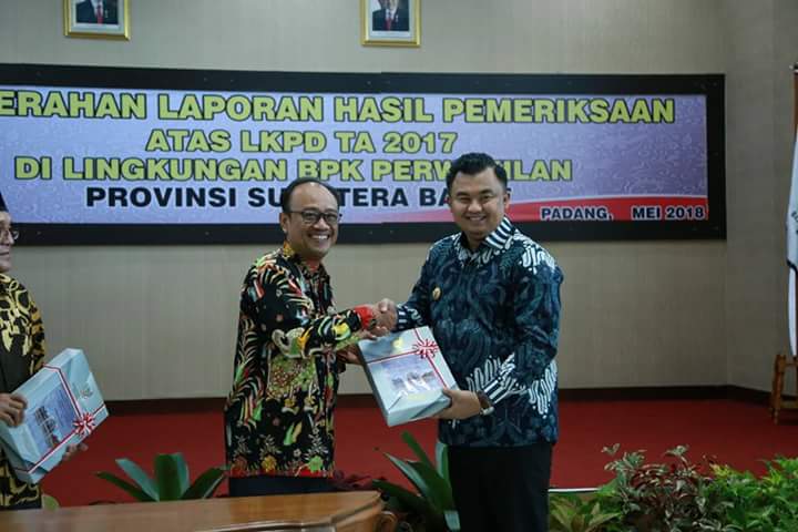 DHARMASRAYA - Pemerintah Kabupaten Dharmasraya kembali meraih opini WTP (Wajar Tanpa Pengecualian) atas Laporan Keuangan Pemerintah Daerah (LKPD) Tahun Anggaran 2017, setelah melalui pemeriksaan dari Badan Pemeriksa Keuangan (BPK) Perwakilan Sumatera Barat. Ini merupakan tahun ketiga Kabupaten Dharm...