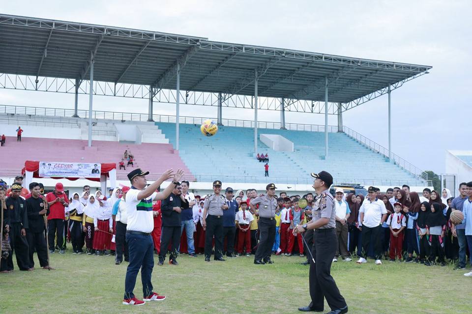 DHARMASRAYA - Menggemakan pelaksanaan Asian Games 2018 di Indonesia, Pemerintah Kabupaten Dharmasraya bersama Polres setempat menggelar Gebyar Asian Games di Sport Center Koto Padang, Sabtu (12/05). Kegiatan ini diikuti oleh ratusan pelajar dan para insan olahraga di Dharmasraya.Sebagaimana diketahu...