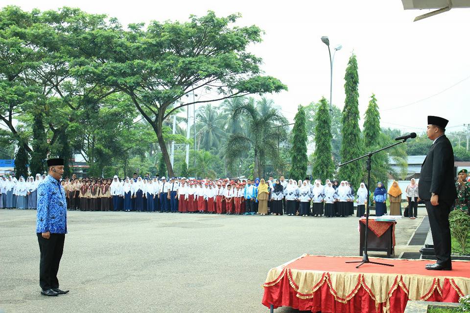 DHARMASRAYA - Upacara Peringatan Hari Pendidikan Nasional (Hardiknas) tingkat Kabupaten Dharmasraya berlangsung khidmat, Rabu (02/05). Bupati Dharmasraya, Sutan Riska Tuanku Kerajaan, bertindak sebagai Inspektur dalam upacara yang dipusatkan di Halaman Kantor Bupati Dharmasraya itu.Bupati saat memba...