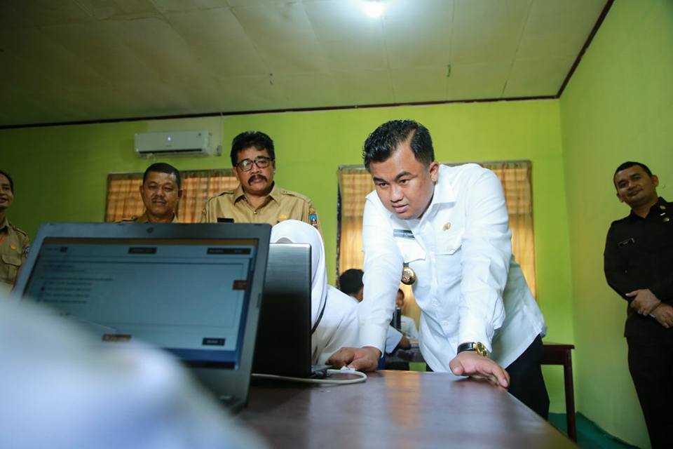 DHARMASRAYA - Bupati Dharmasraya, Sutan Riska Tuanku Kerajaan, didampingi Asisten Bidang Pemerintahan, M.Yusuf dan Kepala Dinas Pendidikan, Marius, meninjau pelaksanaan Ujian Nasional Berbasis Komputer (UNBK) tingkat SMP di Kabupaten Dharmasraya, Senin (23/04).Dari hasil peninjauan yang dilakukan ol...