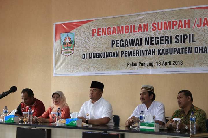 DHARMASRAYA - 112 CPNS di lingkup Pemerintah Kabupaten Dharmasraya resmi diangkat menjadi Pegawai Negeri Sipil (PNS). 112 PNS yang sebagian besar bertugas di bidang kesehatan ini dilantik dan diambil sumpahnya oleh Bupati Dharmasraya, Sutan Riska Tuanku Kerajaan, di Aula Kantor Bupati, Jum'at (13/04...