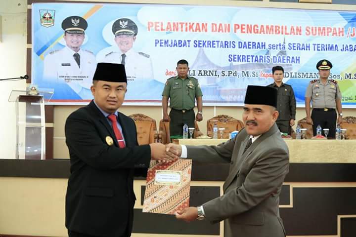 DHARMASRAYA - Adlisman S.Sos, M.Si, resmi dilantik sebagai Penjabat Sekretaris Daerah Kabupaten Dharmasraya, menggantikan Pelaksana Tugas Sekda sebelumnya, Leli Arni S.Pd, M.Si, yang sudah memasuki masa pensiun. Pelantikan ini dilakukan oleh Bupati Dharmasraya, Sutan Riska Tuanku Kerajaan, di Audito...