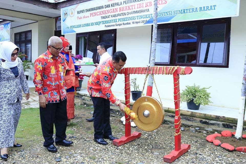DHARMASRAYA - Bhakti Sosial IBI KB Kes Tingkat Kabupaten Dharmasraya tahun 2018 resmi dicanangkan. Pencanangan ini ditandai dengan pemukulan gong oleh Bupati Dharmasraya, Sutan Riska Tuanku Kerajaan, di Puskesmas Sungai Rumbai, Rabu (18/04).Kegiatan yang juga bersamaan dengan Penilaian Lomba KB MKJP...