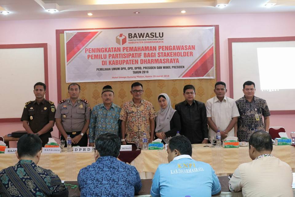 DHARMASRAYA - Badan Pengawas Pemilihan Umum (Bawaslu) Kabupaten Dharmasraya menggelar acara Peningkatan Pemahaman Pengawasan Pemilu Partisipatif bagi Stakeholder di Kabupaten Dharmasraya, Kamis (29/03). Acara yang dilaksanakan di Aula Hotel Gunung Medan itu dibuka secara resmi oleh Wakil Bupati Dhar...