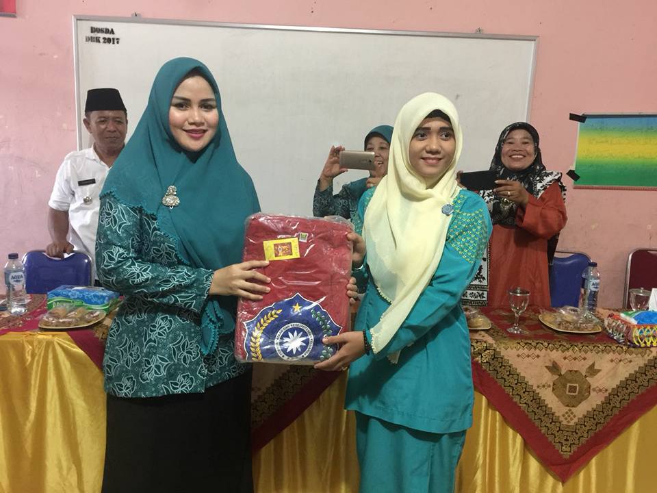 DHARMASRAYA - Ketua TP PKK Kabupaten Dharmasraya, Ny.Dewi Sutan Riska, menyerahkan baju seragam untuk 129 kader dasawisma dan posyandu di Kecamatan Padang Laweh, Rabu (29/03). Penyerahan baju seragam yang dilaksanakan di Aula Kantor Camat Padang Laweh itu turut disaksikan oleh Camat Padang Laweh, Su...