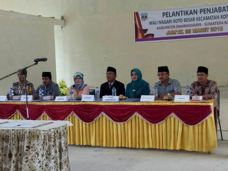 DHARMASRAYA - Rohmad resmi menjabat sebagai Wali Nagari Koto Besar menggantikan pejabat lama, Suwardi, setelah dilantik oleh Camat Koto Besar, Yusrizal, di Gedung Pertemuan Umum Kecamatan Koto Besar, Jum'at (23/03). Acara pelantikan sekaligus serah terima jabatan wali nagari ini turut dihadi...