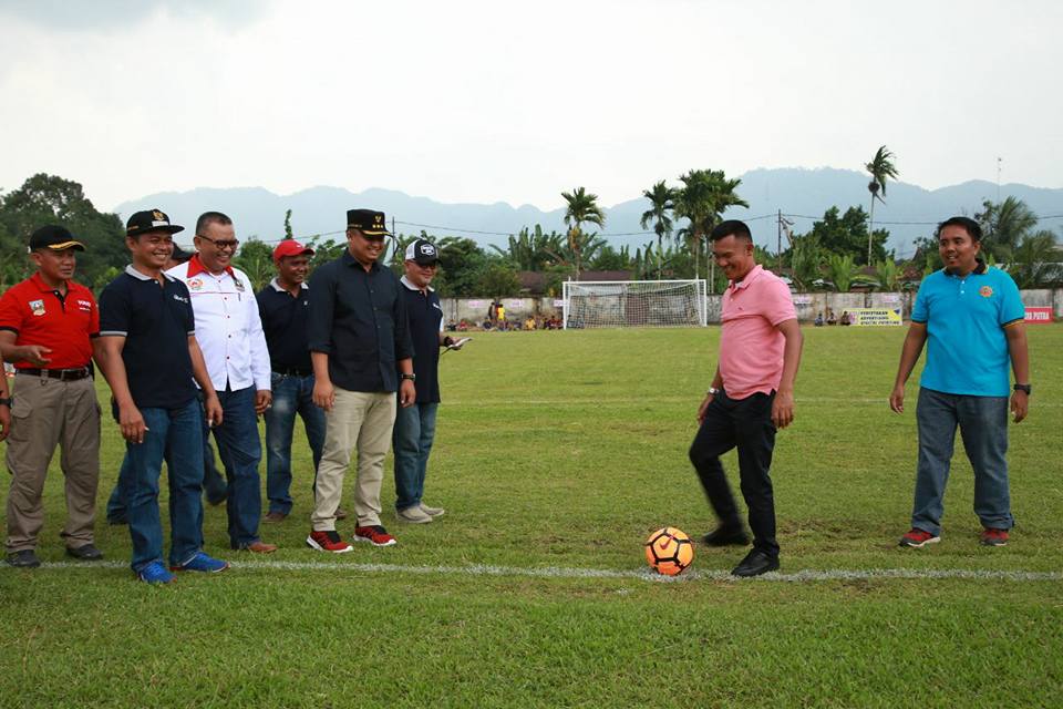 DHARMASRAYA – Wakil Bupati Dharmasraya, Amrizal Dt Rajo Medan, membuka secara resmi Turnamen Sepakbola Postar Cup III 2018, Senin (26/03). Tendangan pertama oleh Wabup menjadi tanda dimulainya pertandingan yang dilaksanakan di Lapangan Bola Kaki Jorong Taratak Nagari Siguntur itu. Me...