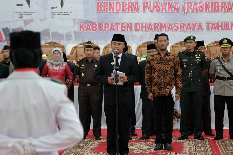 * Sebagai Penggeret Sang Saka Merah Putih* Bupati : Kobarkan Semangat Merdeka dari Dharmasraya untuk IndonesiaHumas Pemkab Dharmasraya - Bupati Dharmasraya Sutan Riska Tuanku Kerajaan mengukuhkan sebanyak 72 anggota paskibraka yang akan ditugaskan dalam menggeret sang saka merah putih, dalam detik d...
