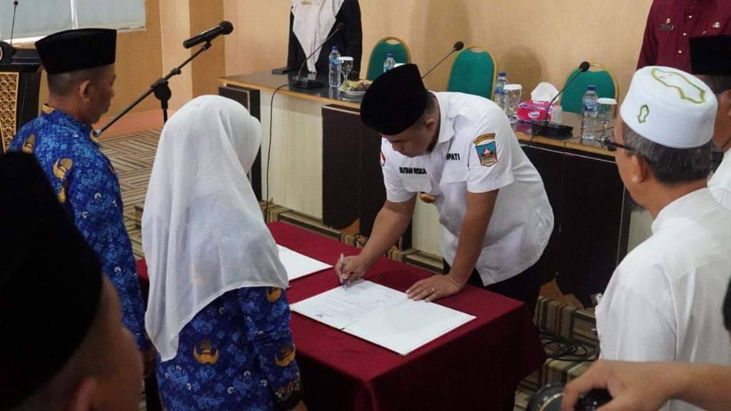 MUTASI DAN PROMOSI BERGULIR DI DISDIK, SUTAN RISKA LANTIK 24 KEPALA SEKOLAHDHARMASRAYA - Bupati Dharmasraya Sutan Riska Tuanku Kerajaan melantik dan memutasikan 24 Kepala UPT SMPN, UPT SDN dan TK di lingkungan Pemkab Dharmasraya. Pelantikan dilaksanakan di auditorium kantor bupati setemp...