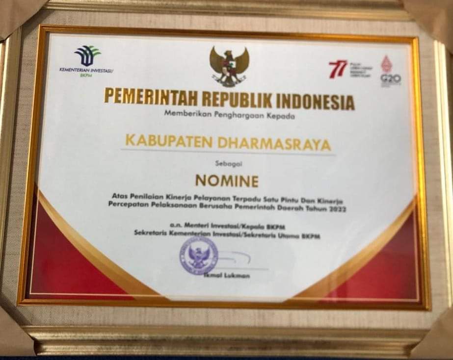 ANUGERAH LAYANAN INVESTASI KEMENTERIAN INVESTASI/BKPM 2022*Berpredikat sebagai nominasi, Dharmasraya diganjar insentif DIDDHARMASRAYA, Kementerian Investasi/BKPM RI menggelar Anugerah Layanan Investasi (ALI) Tahun 2022, di Jakarta Rabu (12/10/2022). Kegiatan itu dihadiri Wapres Ma'ruf Amin dan...