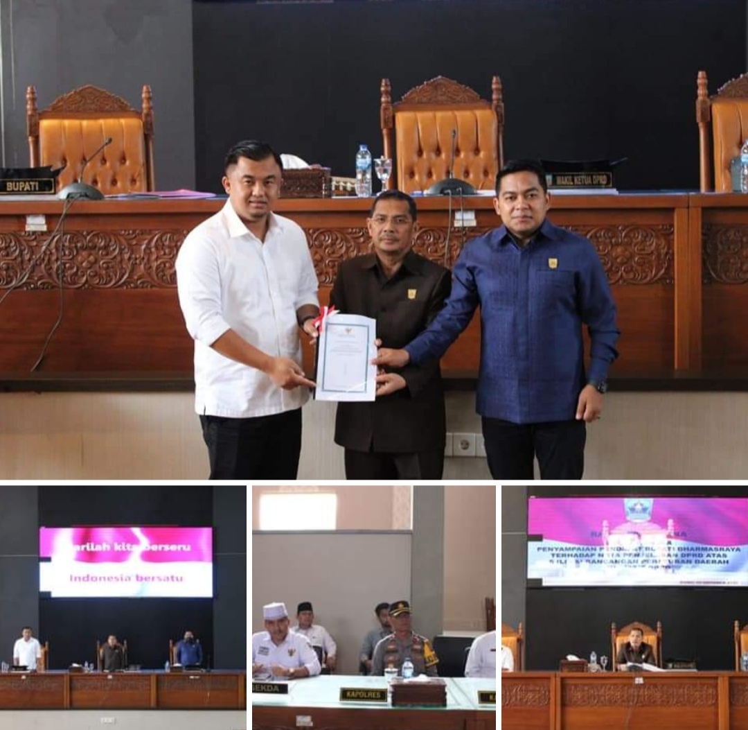 Bupati Berikan Pandangan Atas Nota Penjelasan DPRD terkait Lima RanperdaDHARMASRAYA – Bupati Dharmasraya, Sutan Tuanku Kerajaan sampaikan pandangan atas nota penjelasan DPRD terhadap penyampaian lima rancangan Peraturan Daerah (Ranperda) Kabupaten Dharmasraya, di Ruang Sidang Utama DPRD setempat, ...