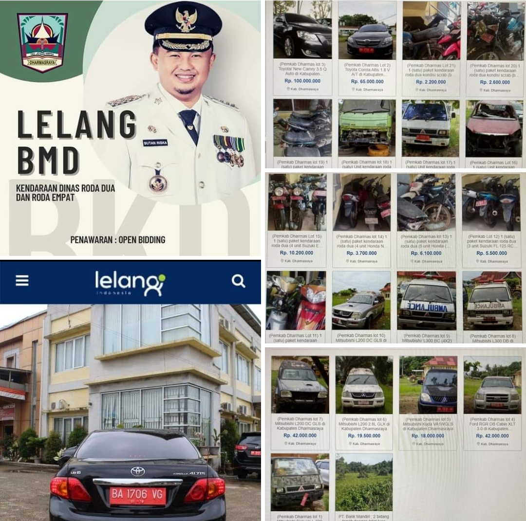 PEMKAB DHARMASRAYA LELANG PULUHAN KENDARAAN, TERBUKA UNTUK MASYARAKAT UMUM Dharmasraya, Pemerintah Kabupaten Dharmasraya bekerjasama dengan Kantor Pelayanan Kekayaan Negara dan Lelang (KPKNL) Padang melelang puluhan kendaraan dinas yang sudah tidak digunakan. Lelang tersebut terbuka untuk selur...