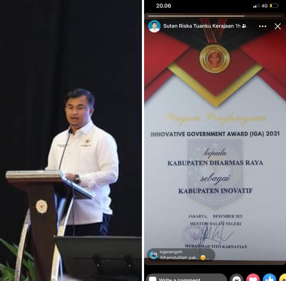 DHARMASRAYA RAIH PREDIKAT KABUPATEN INOVATIF DARI PEMERINTAH PUSATPemerintah Kabupaten Dharmasraya, di bawah kepemimpinan Bupati Sutan Riska Tuanku Kerajaan, kembali menorehkan prestasi tingkat nasional. Adapun penghargaan yang diterima kali ini adalah Inovatif Government Award (IGA) 2021 dari Keme...