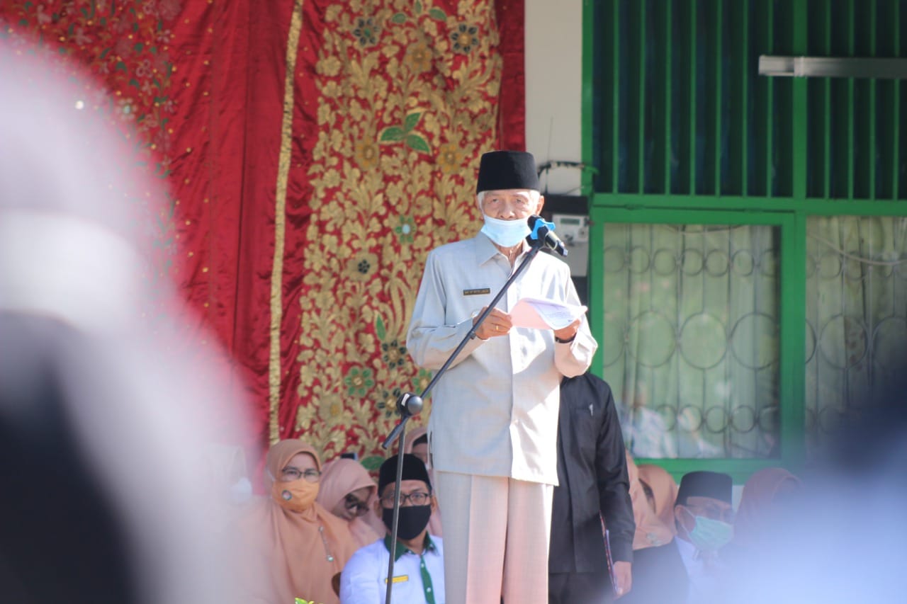Wakil Bupati Kabupaten Dharmasraya, H. Dasril Panin Dt. Labuan menjadi pembina Upacara Peringatan Hari Amal Bhakti Ke- 76 Kementerian Agama RI Tahun 2022 di Lapangan Kantor Kemenag Dharmasraya, Senin (03/01/2022). ...