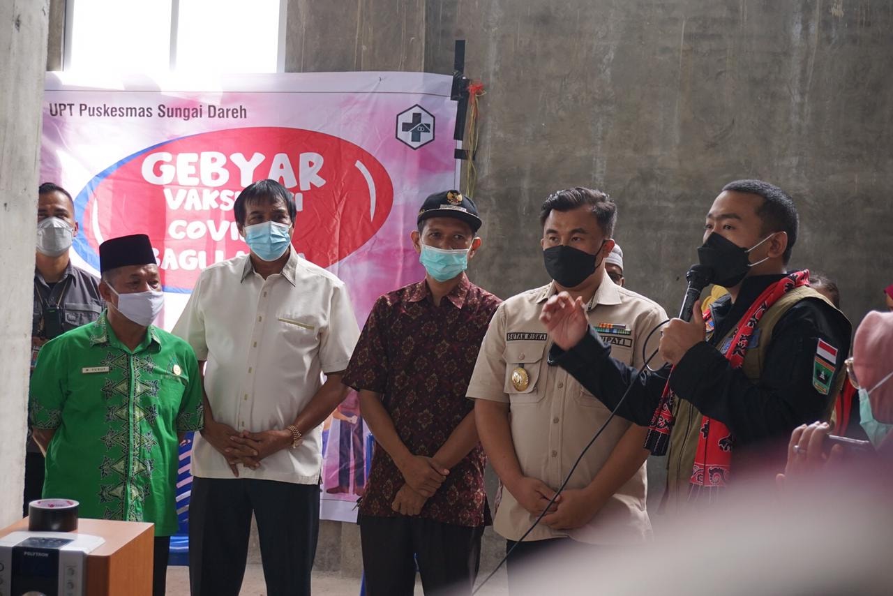 Bupati Dharmasraya, Sutan Riska Tuanku Kerajaan didampingi Sekretaris Daerah, Adlisman, Rabu (14/7/21), turun ke lapangan untuk memantau dan mensuport pelaksanaan vaksinasi covid-19 di lingkungan Perangkat Daerah. Kali ini, vaksinasi dipusatkan di Kantor Dinas PMPTSP.Selain para pegawai di dinas ter...