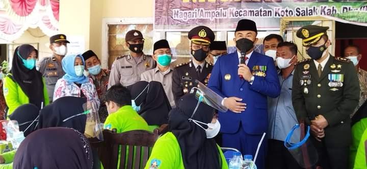 Bupati Dharmasraya, Sutan Riska Tuanku Kerajaan, bersama Forkopimda, Senin (5/7/21), kembali berkeliling memantau titik titik lokasi pelaksanaan vaksinasi massal di Kabupaten Dharmasraya. ...