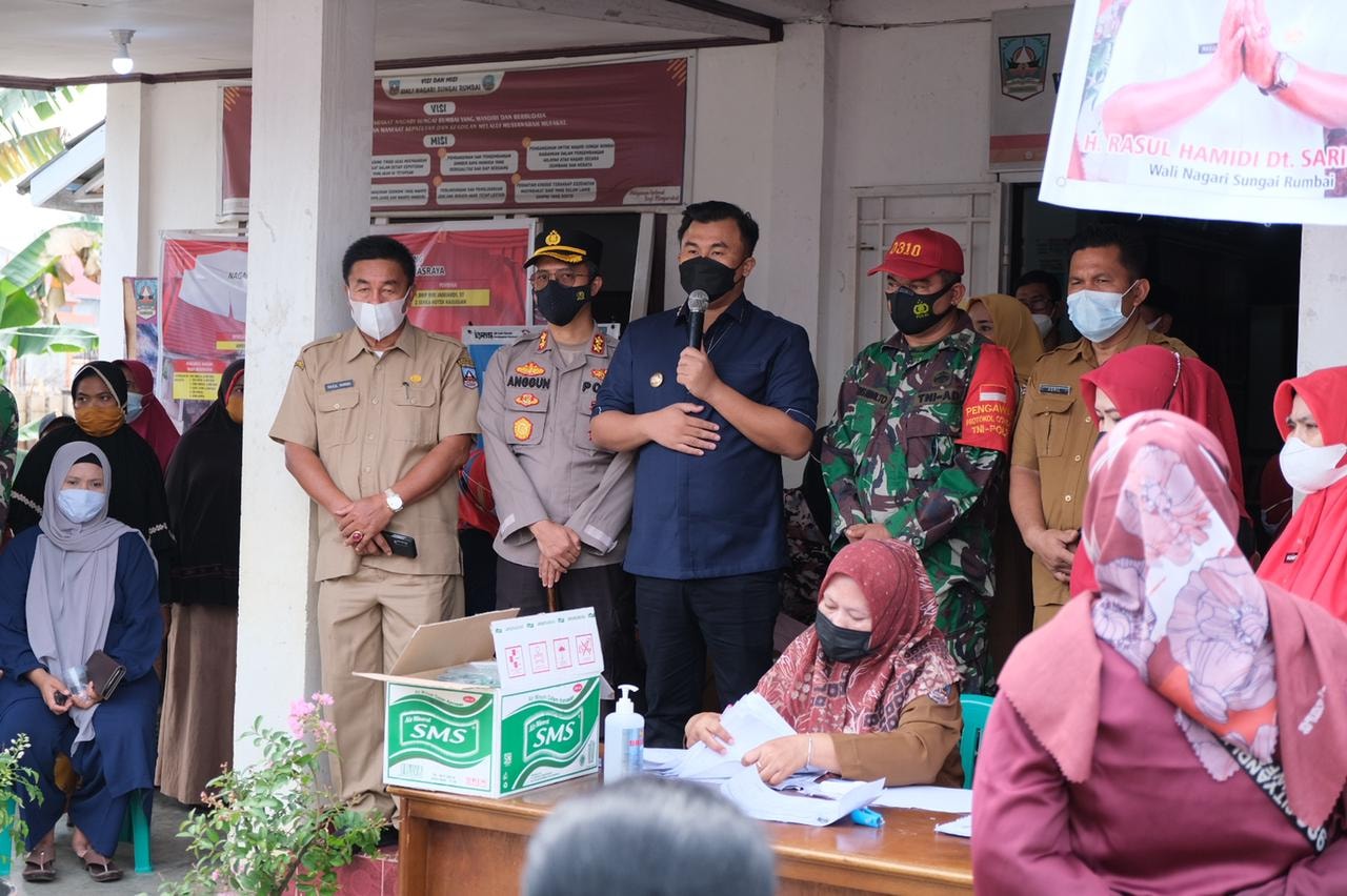 Kecamatan Sungai Rumbai, Senin (5/7/21), melaksanakan vaksinasi massal serentak di empat nagari. Yakni Nagari Sei Rumbai, Sei Rumbai Timur, Kurnia Selatan dan Kurnia Koto Salak.Pelaksanaan vaksinasi ini dipantau langsung oleh Bupati Dharmasraya, Sutan Riska Tuanku Kerajaan, yang turut didampingi Kap...