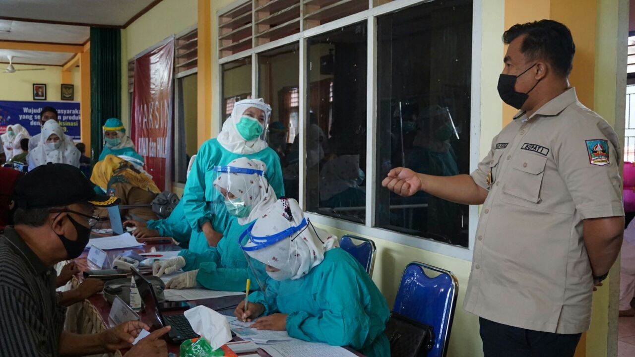 BUPATI SUTAN RISKA PANTAU VAKSINASI COVID-19 DI PASAR NAGARI SIKABAU Para pedagang pasar di Kabupaten Dharmasraya mulai menerima vaksinasi Covid-19 secara bertahap mulai hari ini, Senin (08/03/21). Tahap awal, vaksinasi dilakukan di Pasar Nagari Sikabau, Pulau Punjung. Bupati Dharmasraya, Sutan Risk...
