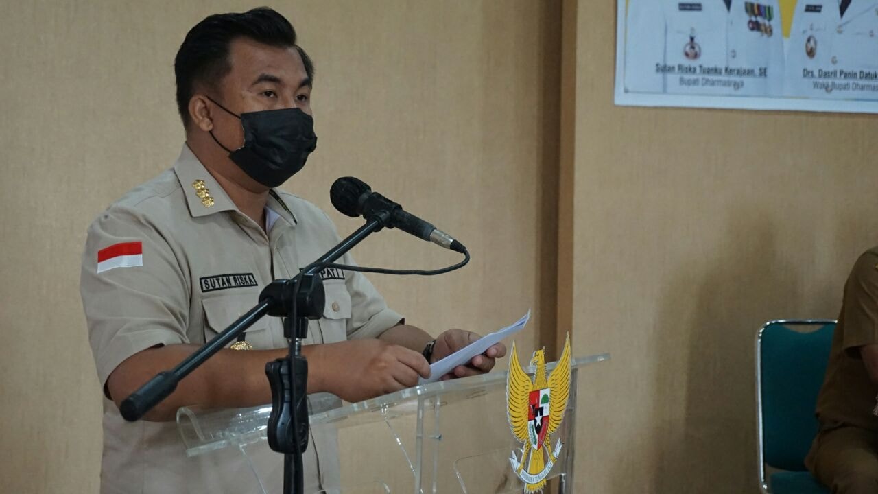 BUPATI SUTAN RISKA DIDAPUK SAMPAIKAN KATA SAMBUTAN DALAM PENYERAHAN LKPDBupati Dharmasraya, Sutan Riska Tuanku Kerajaan, menyerahkan Laporan Keuangan Pemerintah Daerah (LKPD) Kabupaten Dharmasraya tahun anggaran 2020 kepada Badan Pemeriksa Keuangan Republik Indonesia (BPK-RI) Perwakilan Sumatera Bar...