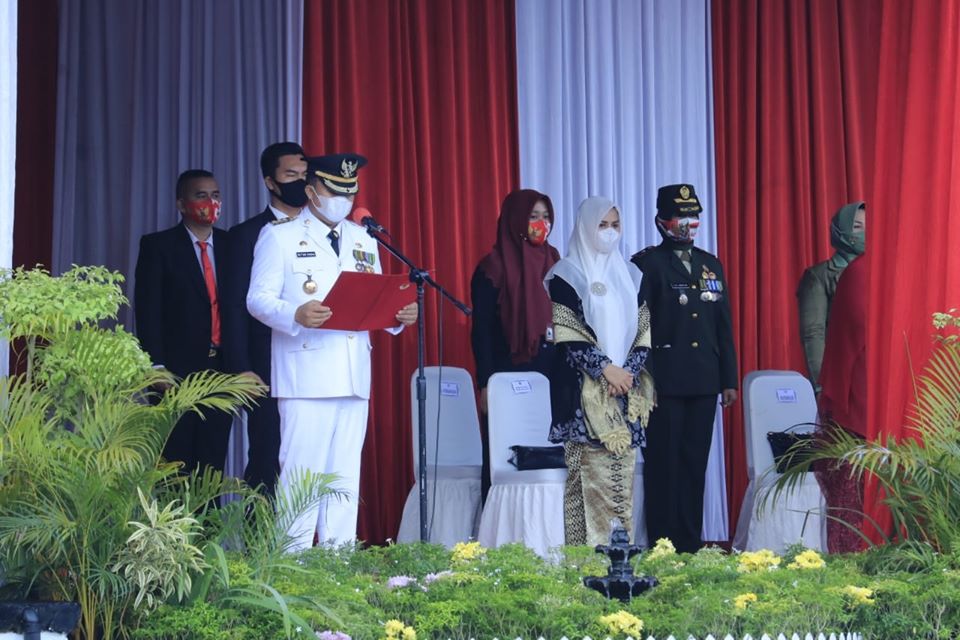 DIGELAR SEDERHANA, UPACARA PERINGATAN HUT KE-75 RI TETAP BERLANGSUNG KHIDMATMeski di tengah pandemi, Pemerintah Kabupaten Dharmasraya tetap menyelenggarakan upacara peringatan Hari Kemerdekaan ke-75 Republik Indonesia, di Halaman Kantor Bupati Dharmasraya, Senin (17/08/20). Upacara diselenggarakan s...