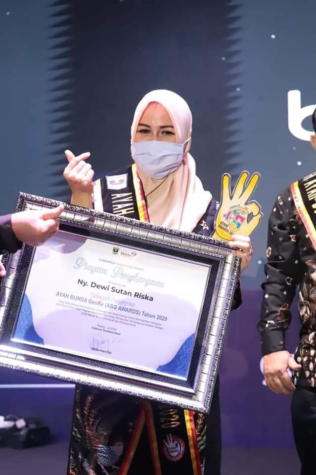 DEWI SUTAN RISKA TERIMA PENGHARGAAN BUNDA GENRE DARI BKKBNKetua TP PKK Kabupaten Dharmasraya, Ny. Dewi Sutan Riska, menerima Penghargaan Bunda GenRe dari BKKBN Provinsi Sumatera Barat.Penghargaan tersebut diserahkan oleh Wakil Gubernur Sumbar, Nasrul Abit, pada hari puncak GenRe Awards Sumatera Bara...