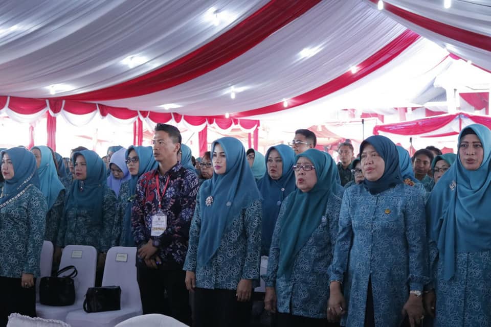 Ny. Dewi Sutan Riska Hadiri Peringatan HKG-PKK Tingkat Nasional ke 47Dharmasraya, Humas Pemda - Ketua TP PKK Kabupaten Dharmasraya Ny. Dewi Sutan Riska didampingi Ketua Dharmawanita Kabupaten Dharmasraya, Syafni, menghadiri rangkaian acara puncak peringatan Hari Kesatuan Gerak PKK ke 47 Tingkat Nasi...