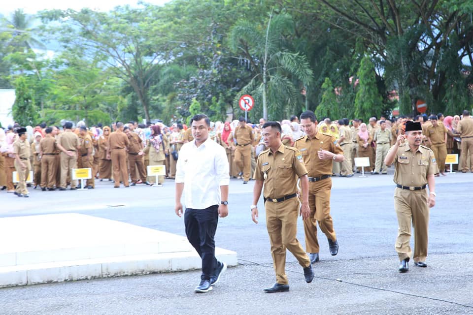 DHARMASRAYA - Hari pertama kerja pasca libur lebaran, Bupati Dharmasraya, Sutan Riska Tuanku Kerajaan langung mengecek kehadiran ASN di lingkup Pemerintah Kabupaten Dharmasraya lewat apel gabungan yang digelar di Halaman Kantor Bupati, Senin (10/06).Pada kesempatan yang turut dihadiri Wakil Bupati, ...