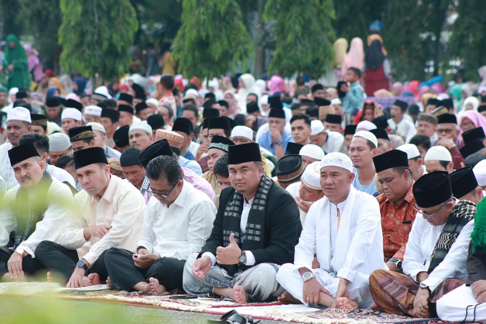 Ribuan masyarakat Kabupaten Dharmasraya memadati halaman Kantor Bupati Dharmasraya untuk melangsungkan Shalat Idul Fitri 1440 Hijriah, Rabu (05/06/19).Sholat hari raya idul fitri pada kesempatan kali ini terasa sangat berkesan karena duo pimpinan Dharmasraya, yakni Bupati Sutan Riska Tuanku Kerajaan...