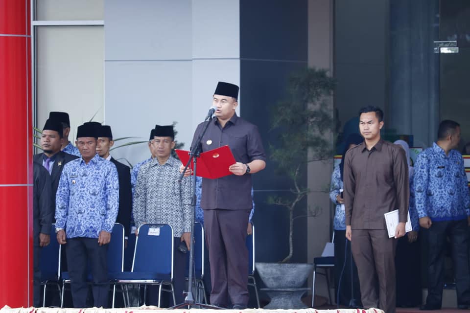 DHARMASRAYA - Kendati hari libur, Pemerintah Kabupaten Dharmasraya tetap melaksanakan upacara bendera memperingati Hari Lahir Pancasila, Sabtu, 1 Juni 2019.Upacara yang dilaksanakan di Halaman Kantor Bupati Dharmasraya itu dipimpin langsung oleh Bupati Dharmasraya, Sutan Riska Tuanku Kerajaan. Turut...