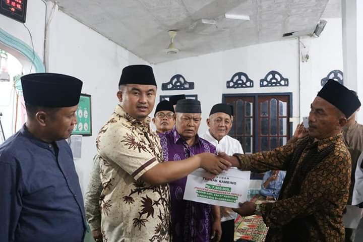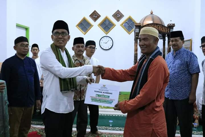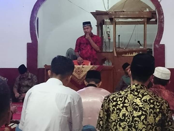 DHARMASRAYA - Kepala Dinas Perpustakaan dan Kearsipan Kabupaten Dharmasraya, Irsyad beserta rombongan yang tergabung dalam Tim X Safari Ramadhan Pemerintah Kabupaten Dharmasraya, disambut hangat masyarakat dan jama'ah tarwih Masjid Baiturrahman Nagari Ampang Kuranji, Kecamatan Koto Baru, Senin (20/0...