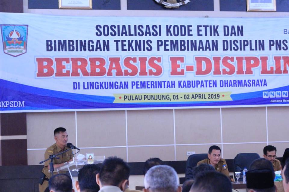 Pemerintah Kabupaten Dharmasraya melalui BKPSDM menggelar Sosialisasi Pembinaan SDM Pembinaan Disiplin PNS Berbasis Aplikasi e-Disiplin, bertempat di Auditorium Dharmasraya, Senin (01/04).Sosialisasi yang dibuka secara resmi oleh Wakil Bupati Dharmasraya, H. Amrizal Dt Rajo Medan, dan turut dihadiri...