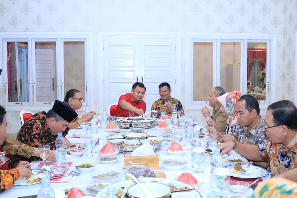 Bupati Dharmasraya, Sutan Riska Tuanku Kerajaan bersama Wakil Bupati, H. Amrizal Dt Rajo Medan menjamu makan malam Menteri Koperasi dan UKM, Puspayoga beserta rombongan di rumah dinas bupati, Senin (11/03) malam.Selain jajaran pemerintah daerah, makan malam bersama menteri ini juga tampak dihadiri o...