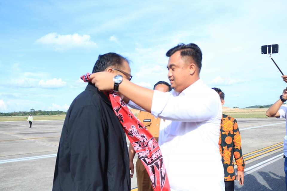 Bupati Dharmasraya, Sutan Riska Tuanku Kerajaan dan sejumlah jajaran pemerintah daerah menyambut kedatangan Menteri Koperasi dan UKM RI, Puspayoga, beserta rombongan di Bandara Muara Bungo, Senin (11/03) sore.Dengan wajah sumringah, Menteri Puspayoga yang turun dari tangga pesawat langsung disalami ...