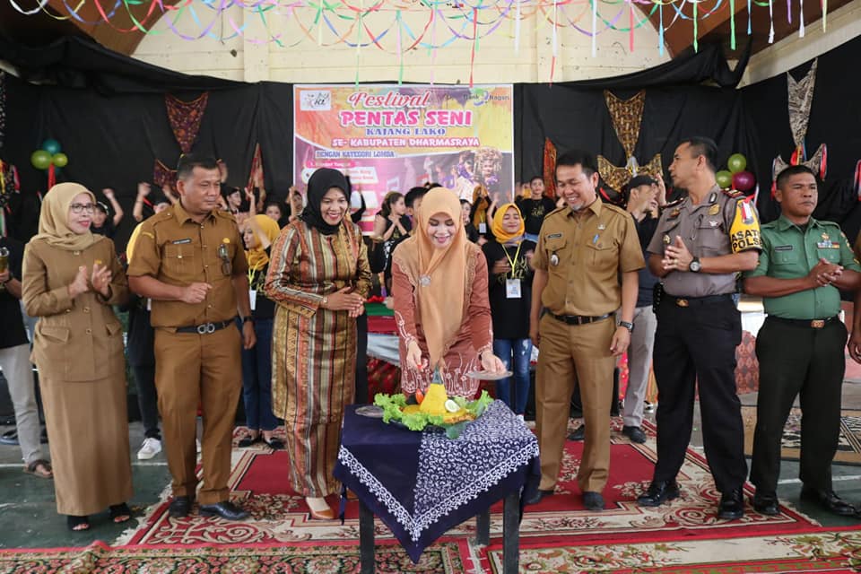 DHARMASRAYA - Festival Pentas Seni Anak Nagari yang diprakarsai oleh Sanggar Kajang Lako dan Pemerintah Kecamatan Koto Baru resmi dibuka oleh Ketua Dekranasda Kabupaten Dharmasraya, Ny. Dewi Sutan Riska, Selasa (18/12). Ditandai dengan pemotongan tumpeng oleh Ketua Dekranasda, pembukaan pentas seni ...