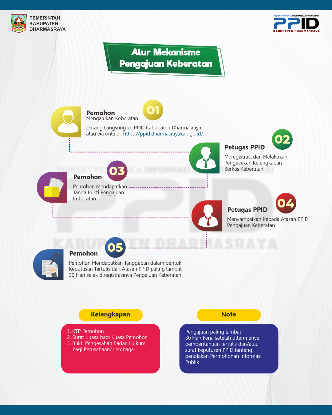 - Pemohon informasi publik mengajukan keberatan secara tertulis kepada atasan PPID dalam jangka waktu paling lambat 30 (tiga puluh) hari kerja setelah diketemukan alasan;